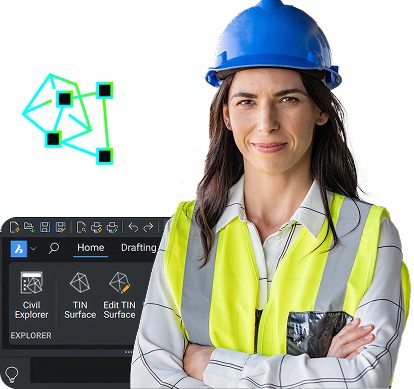 BricsCADの土木ツールと土木用地設計を使用して、建設現場をレイアウトおよび設計します。